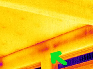 An der Decke sind die einzelnen Befestigungsschrauben zu sehen. Selbst über dem Fenstersturz ist mangelnde Dämmung feststellbar.